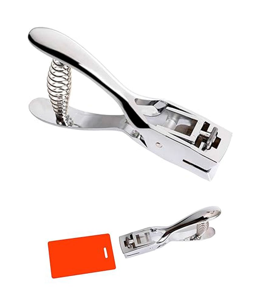 La perforadora de ranura para insignia tiene una apertura de mandíbula de aproximadamente 3/32 pulgadas y está diseñado para tarjetas de PVC de hasta 40 ml.